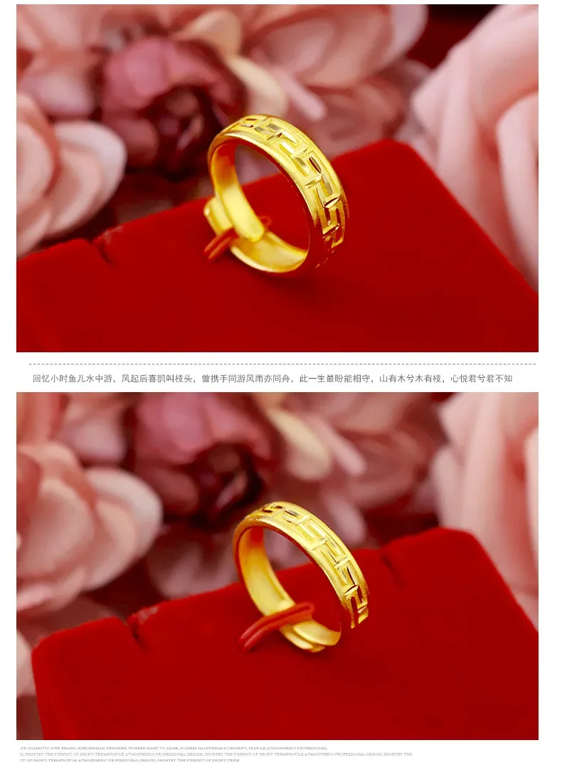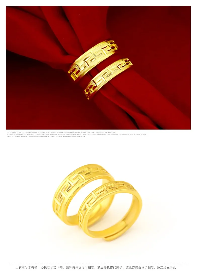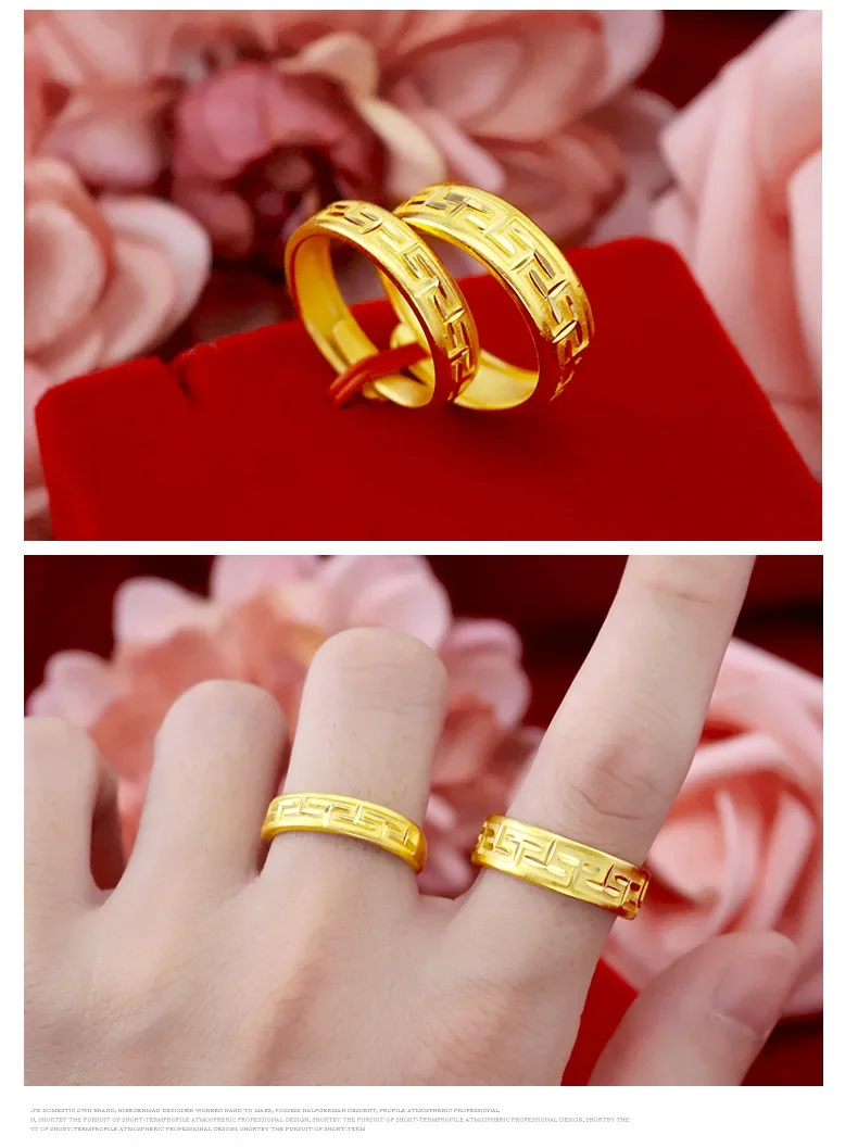 9999 real gold 24K yellow gold Wan Zi Pattern Couple’s Ring Great Wall Pattern Pair Ring