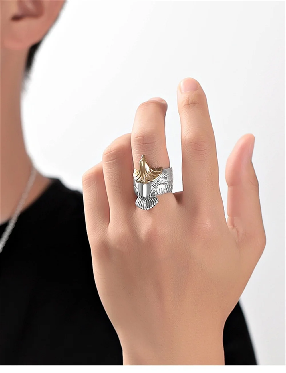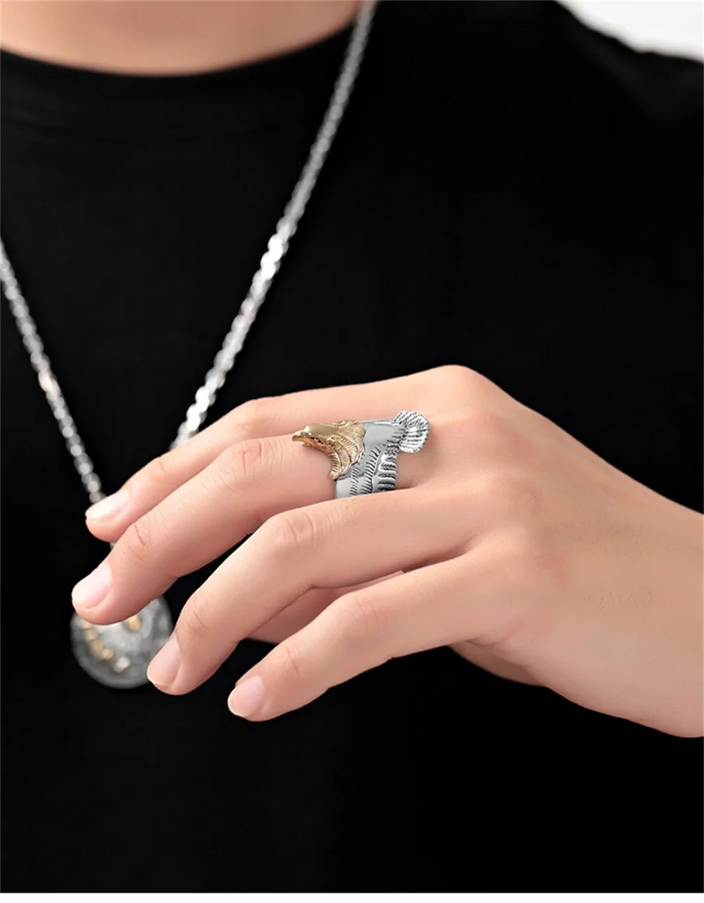 Feathers are a symbol of bravery and a sign of honor. Having feathers symbolizes having courage, beauty, and wealth. Feathers are also a symbol of purity and eternity, representing calmness and temperament. The combination of vintage silver and feathers is hand carved, with clear and natural patterns that are lifelike, bright in color, and polished smooth and glossy.