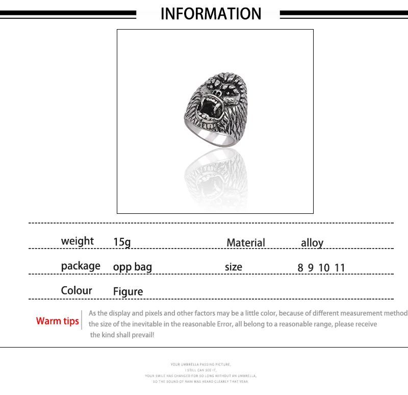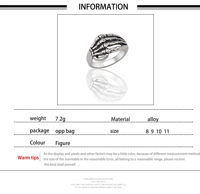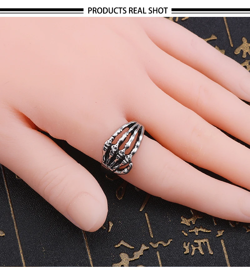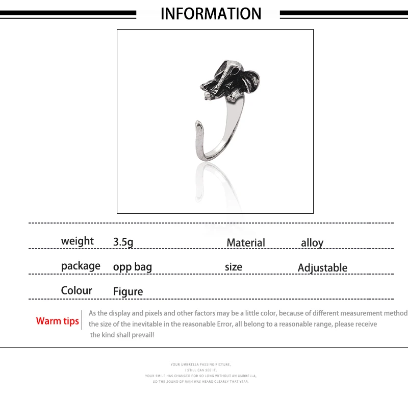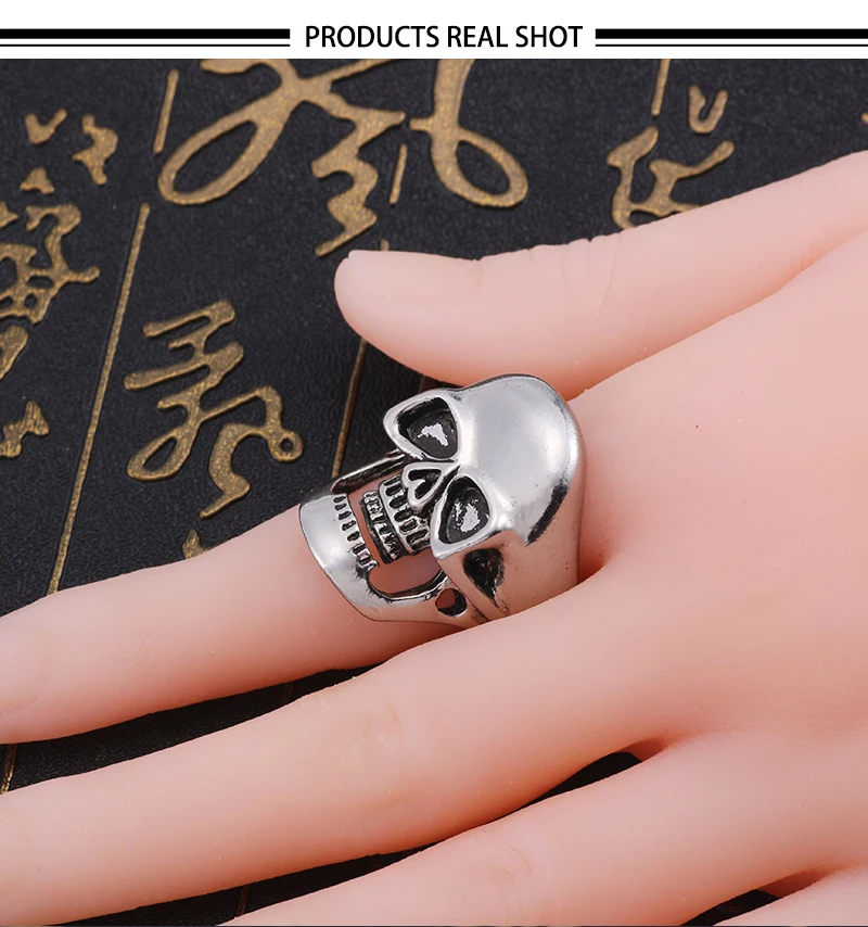 Skull Punk Ring For Men Jewelry Vintage Steampunk Halloween Gifts Hip Hop Rings Adjustable 3D Animal Ring Christmas Jewelry Gift