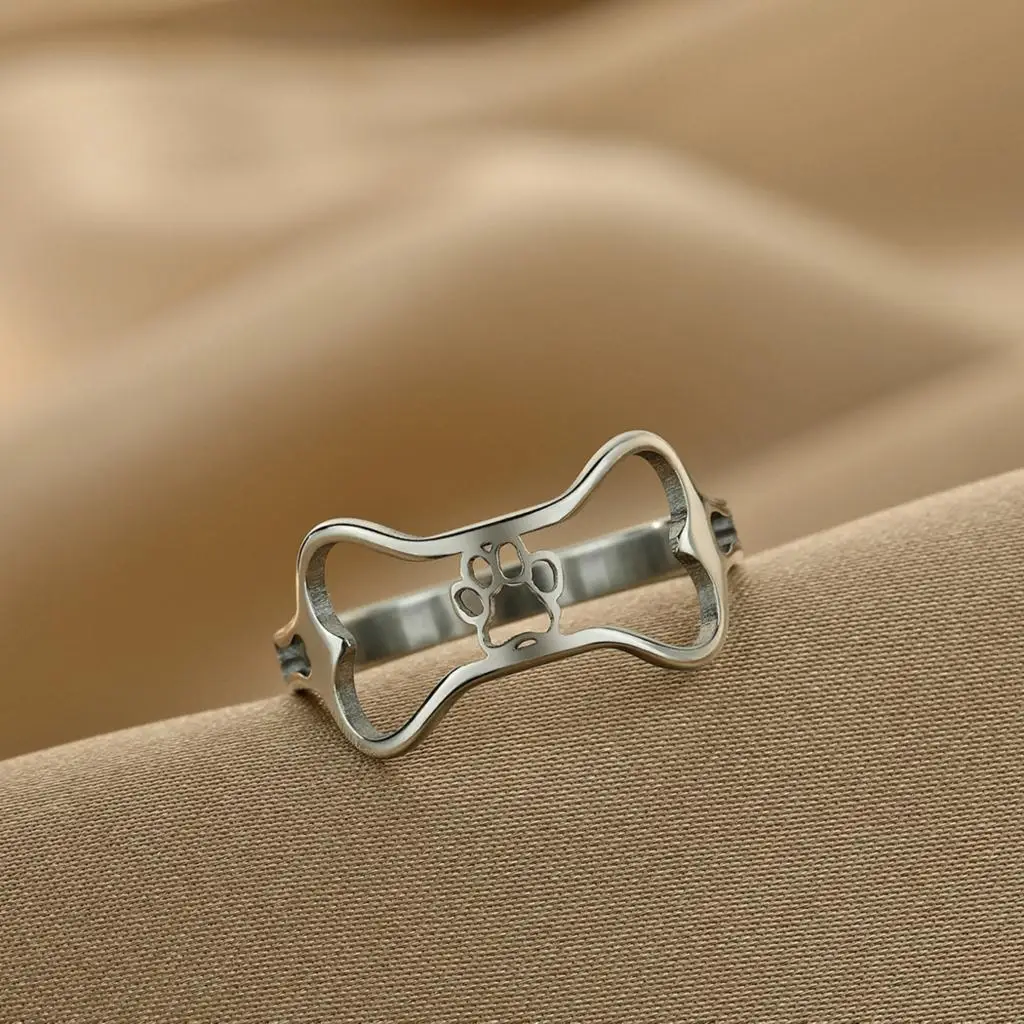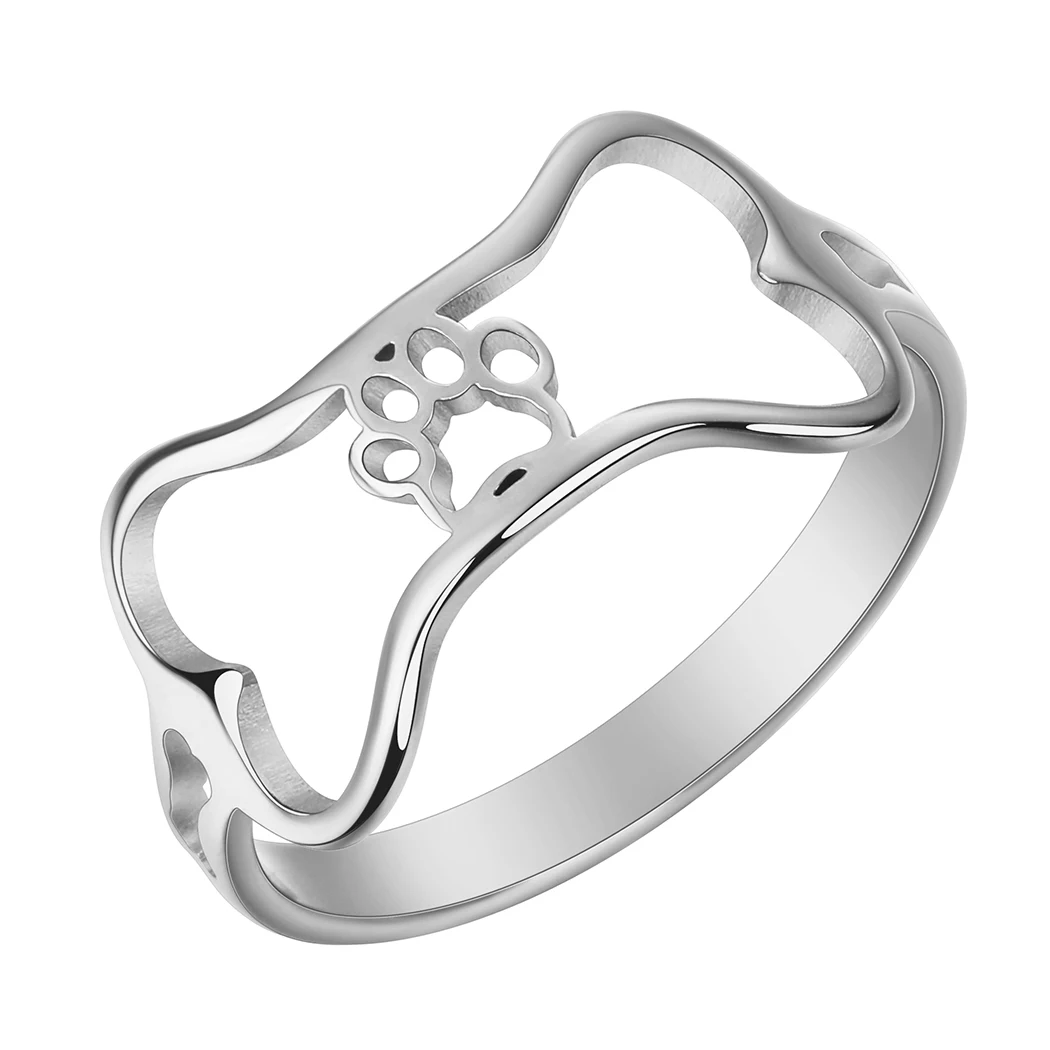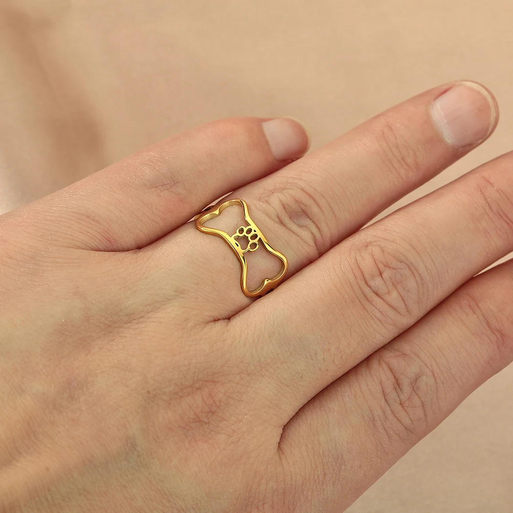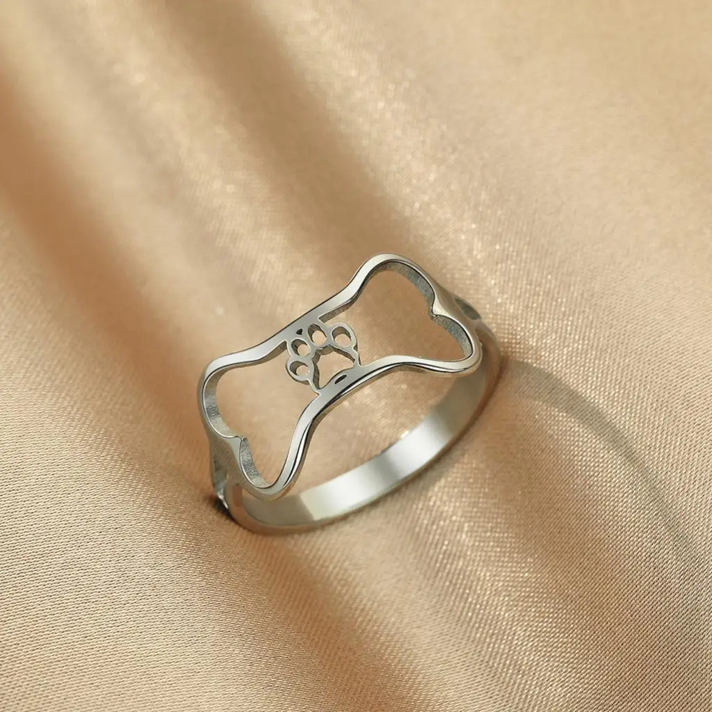 Stainless Steel Dog Bone Paw Print Rings For Women Cute Animal Cartoon Jewelry Knuckle Ring