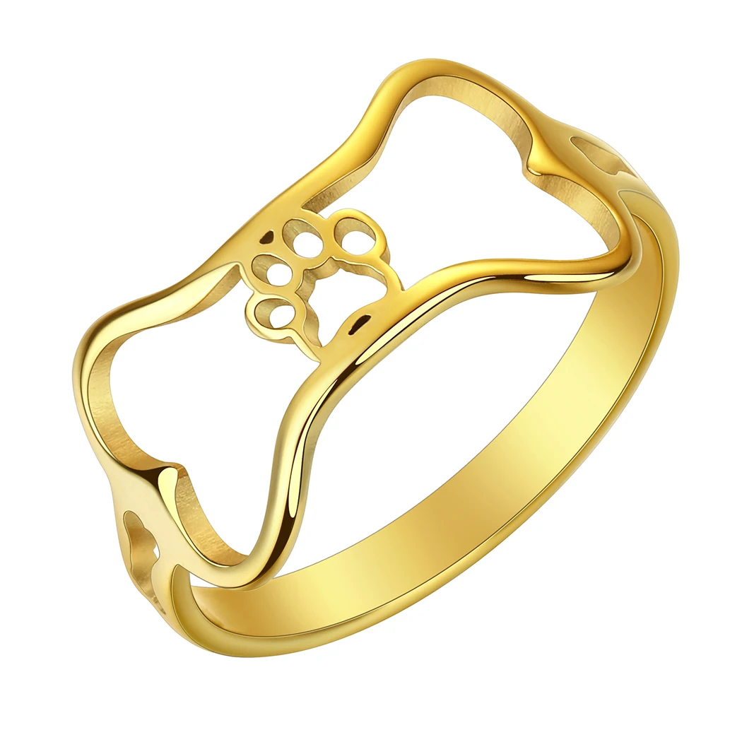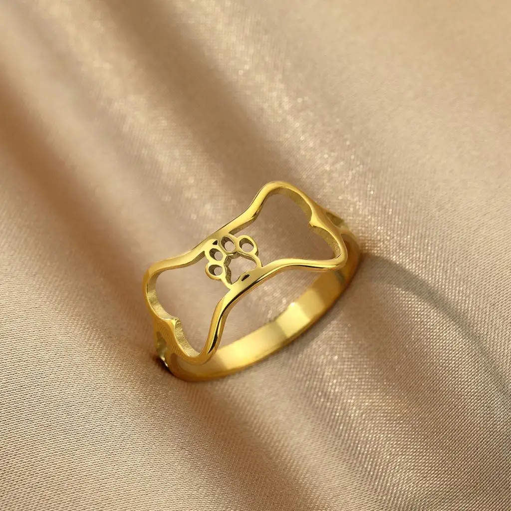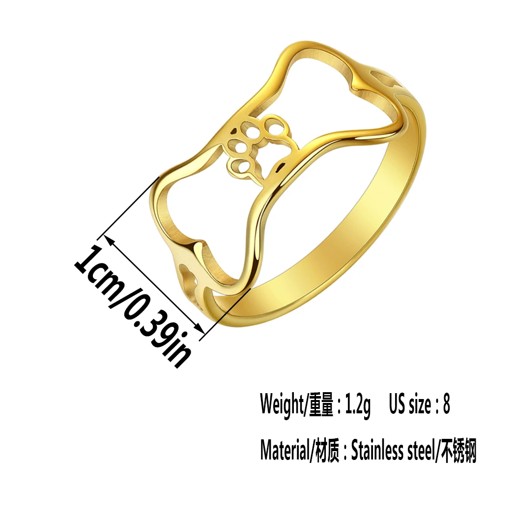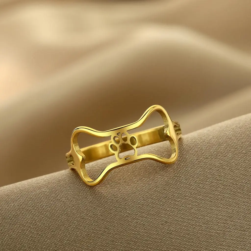 Stainless Steel Dog Bone Paw Print Rings For Women Cute Animal Cartoon Jewelry Knuckle Ring